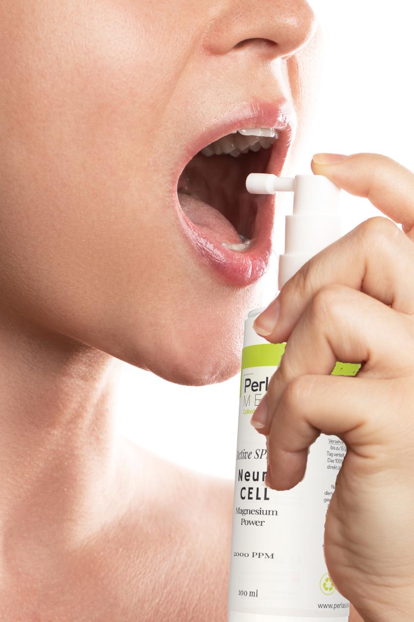 NeuroCELL Magnesium Power può essere assunto per via orale o spruzzato direttamente sulle zone stressate della pelle. La granulometria dell’elemento garantisce un assorbimento immediato e diretto attraverso la mucosa orale e/o la pelle.